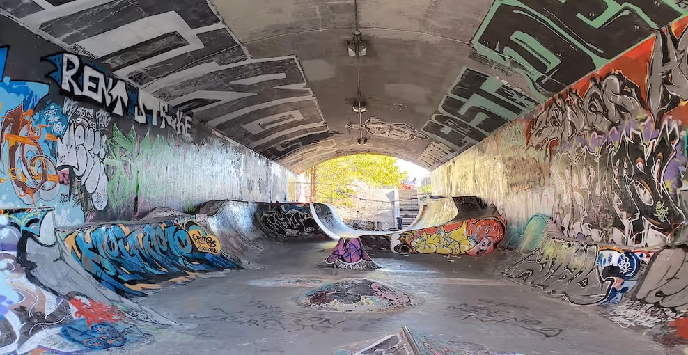 One significant location straddled the Burnaby border: Leeside Skatepark in East Vancouver, near Cassiar Connector at East Hastings and Highway 1. Built in the mid-1990s by Lee Matasi (tag: “Avers”), a skateboarder and graffiti artist who constructed the DIY park as a teenager, Leeside became one of Vancouver’s few designated legal graffiti walls after the Parks Board officially recognized the community-rebuilt park in 2006. Matasi was murdered outside a Vancouver nightclub in 2005, but his legacy endures.