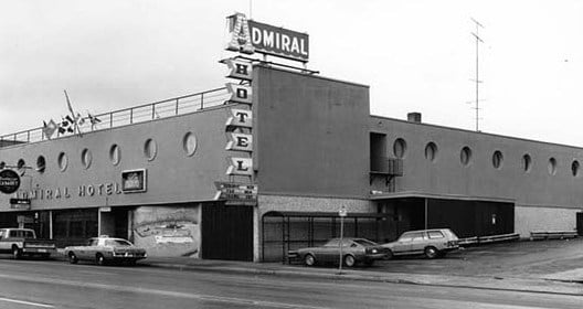 The pub (now known as Admiral Pub & Grill) maintains an “old school vibe” with warm wooden walls, live cover bands, and a large beer selection. The hotel portion operates as Howard Johnson North Burnaby Boutique Hotel. Heritage Burnaby holds 19-21 archival records documenting the establishment, including historical photographs showing the exterior, murals, signage, and the nautical decor at the entrance to the Admiral Lounge.
