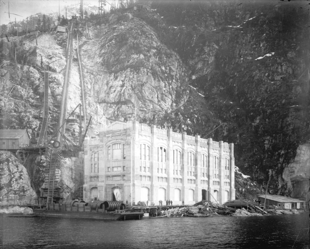 Power from the Lake Buntzen generating station first flowed to Vancouver on December 17, 1903, carried by a 17-mile pole line that crossed Burrard Inlet on steel towers 140 feet and 60 feet tall at Barnet Beach. Two days later, Vancouver became the first major city on the Pacific Coast lit entirely by hydroelectric power, a $1.2 million project that had overrun its $800,000 budget but transformed the region’s future.