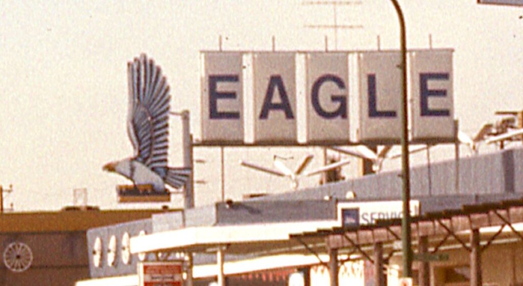 Another significant neon artifact recently returned to Hastings Street. The Eagle Ford sign, a large double-sided eagle 13.3 feet tall by 8.9 feet wide, originally hung at Walsh Motors (later Eagle Motors Limited) at 4161 Hastings Street. Installed in the 1940s by Neon Products of Vancouver, the blue and white sign with gold neon tubing was based on Richfield Oil Company’s eagle mascot. After Eagle Ford closed in 1985 during a recession (it had been BC’s largest Ford dealer since 1948), the sign was vandalized, then reclaimed by Neon Products. A local collector preserved it for 25 years before the City of Burnaby purchased it in September 2012. Following restoration by Galaxie Signs, it was reinstalled on a sidewalk post at 4191 Hastings Street in February 2025.