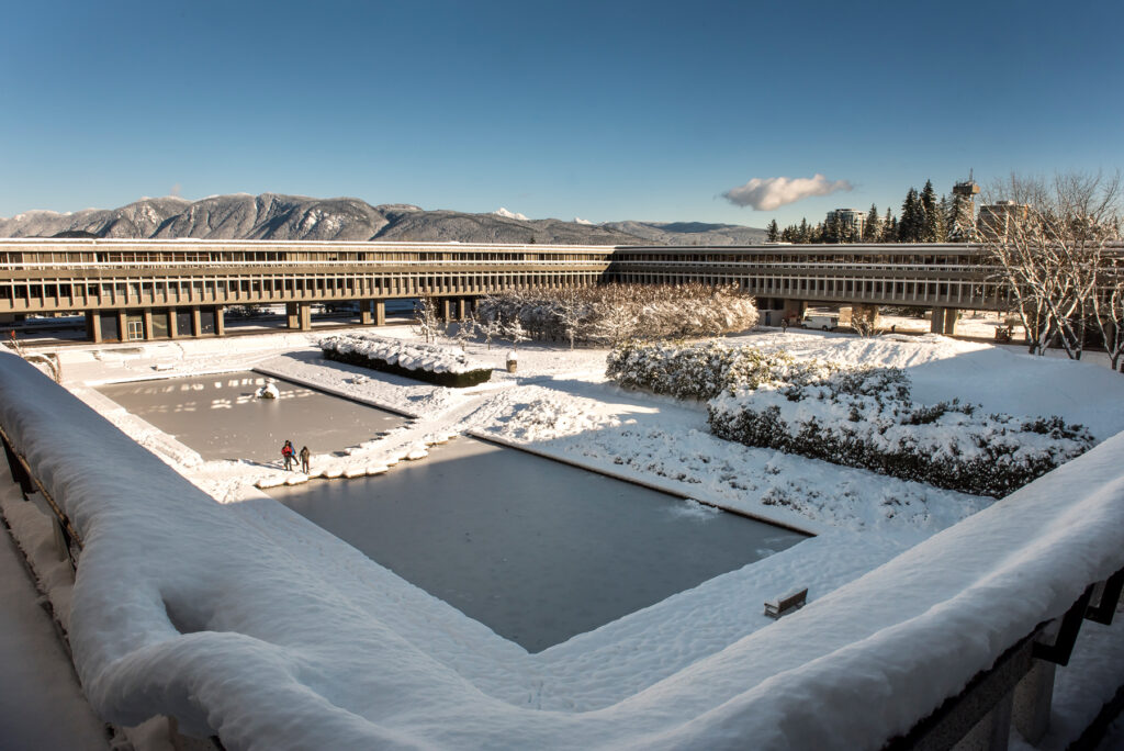 Drive up Burnaby Mountain in January when snow is forecast and Simon Fraser University becomes a different place. The concrete stays cold. The courtyards offer little shelter. Ice collects on the exposed walkways. Students hunch their shoulders and move quickly between buildings.Arthur Erickson’s architecture — brutalist, angular, deliberate — was built for this. The campus opened in 1965, two years after he won the commission at age 38. His first major institutional project. The design is horizontal and geometric. Long concrete planes. Repeated columns. Open courtyards that funnel wind. In summer, the space feels monumental. In winter, exposure.